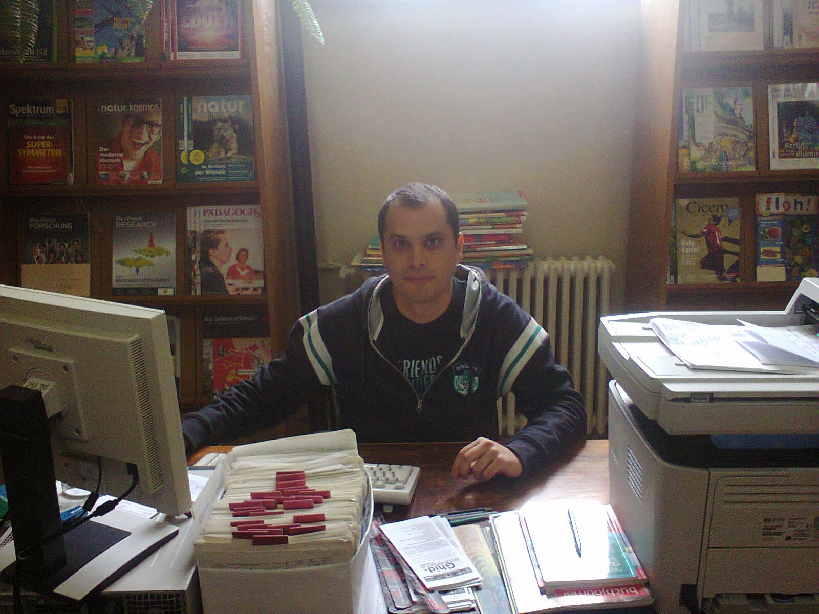 Sala germană de lectură a Universităţii din Craiova şi-a deschis prima oară uşa acum aproape două decenii. Ca să aflu cine are acces la publicaţii astăzi şi cum evoluează interesul cititorilor pentru limba şi literatura germană, am stat de vorbă cu gestionarul sălii, Adrian Cerăceanu. L-am găsit lucrând la biroul din faţa intrării, înconjurat de rafturi cu dicţionare, atlase şi enciclopedii nemţeşti.